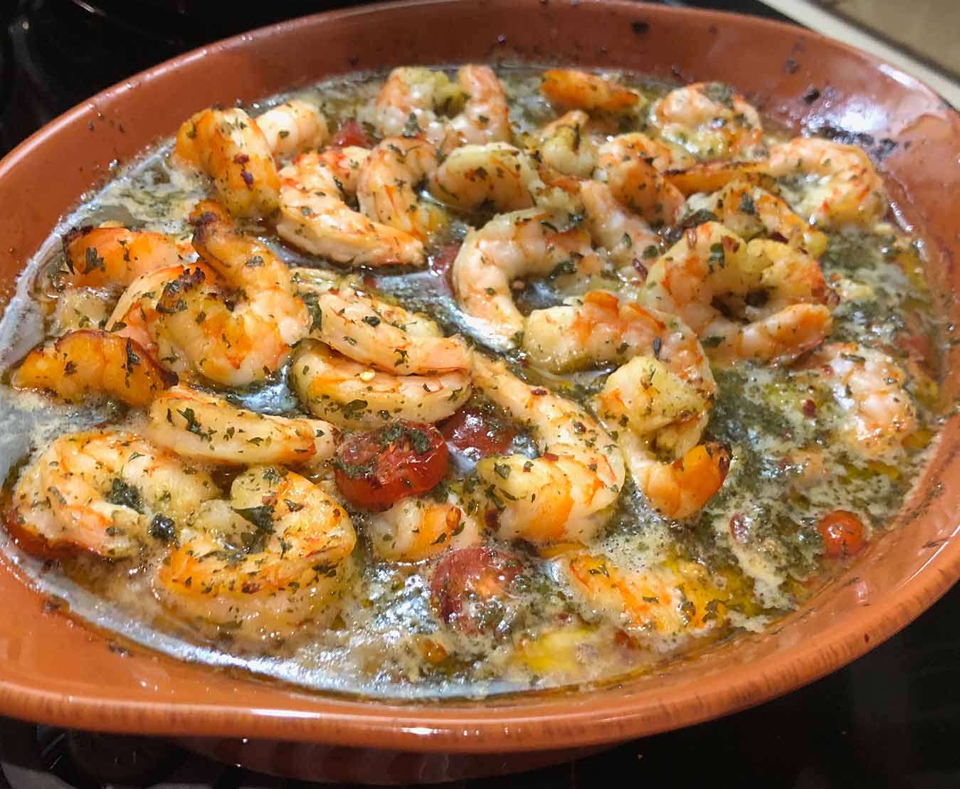 Visiting some friends from out of town at their condo, the Mrs. had found a great sounding shrimp recipe that was said to be quick & easy. We tried it, but the shrimp was undercooked. Back in the oven it went, and we finally got it right. It was absolutly incredible! Now it is one of my favorite quick go-to meals, and everyone who has tried it has loved it. We hope you love it too! P.S. Adjust the flavor of the red pepper flakes to your own taste. We like it spicy!