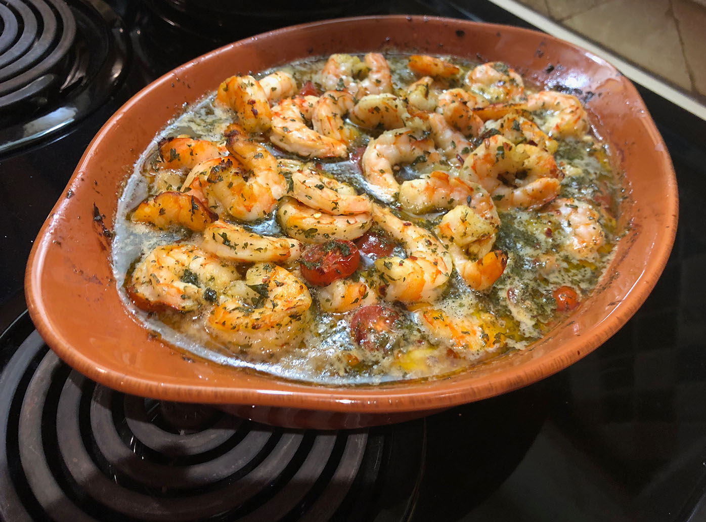 Visiting some friends from out of town at their condo, the Mrs. had found a great sounding shrimp recipe that was said to be quick & easy. We tried it, but the shrimp was undercooked. Back in the oven it went, and we finally got it right. It was absolutly incredible! Now it is one of my favorite quick go-to meals, and everyone who has tried it has loved it. We hope you love it too! P.S. Adjust the flavor of the red pepper flakes to your own taste. We like it spicy!